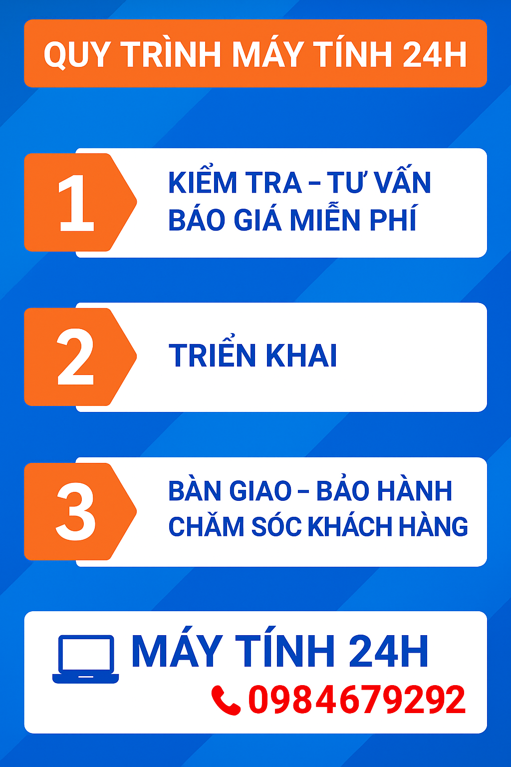 MÁY TÍNH 24H luôn thực hiện quy trình đúng chuẩn để đảm bảo luôn mang lại hiệu quả cho khách hàng ở mức cao nhất: